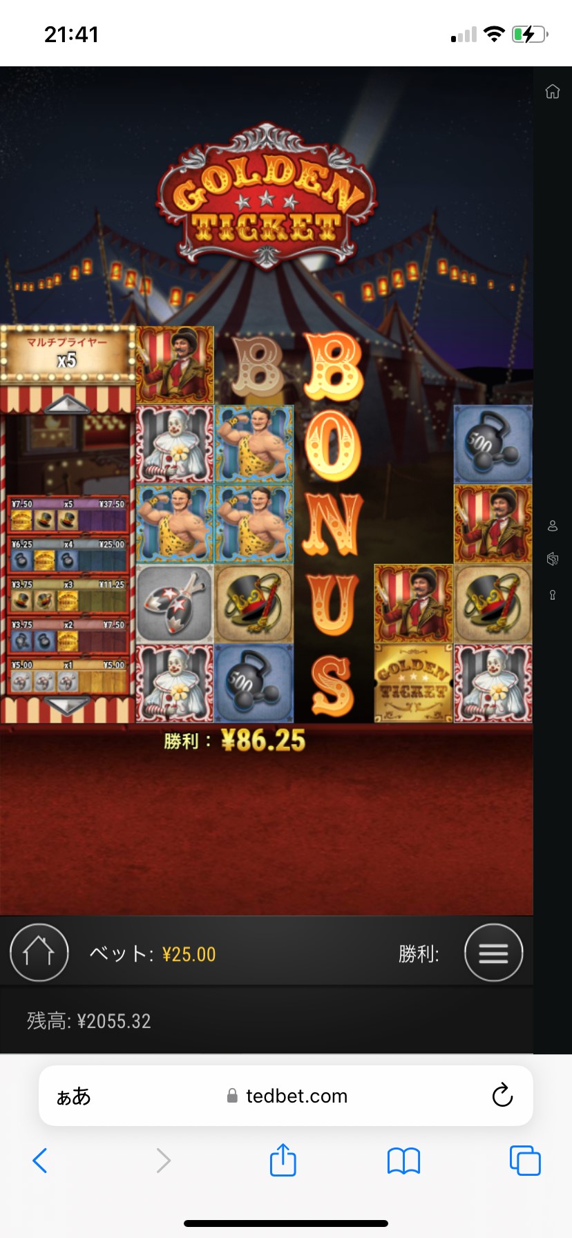 マルチプライヤーが増加されていき、かつ、5つのシンボルが揃い、約10,000円の配当を叩き出した。