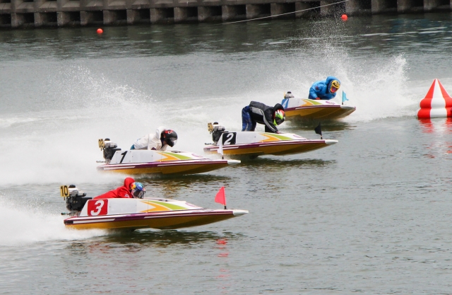 ボートレースは滑走艇と言って水の上を滑ってレースをします。